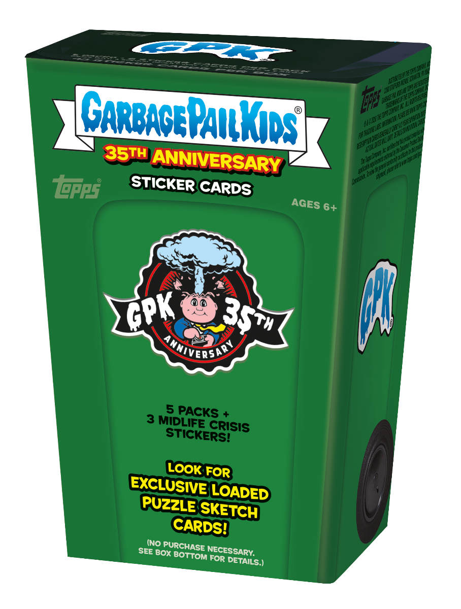 Celebrate 35 years of outrageous and gross fun with the 2020 Garbage Pail Kids Series 2: 35th Anniversary set! This year’s release will showcase new shaped sketch cards, new location relic cards, fun card backs, and new packaging!
