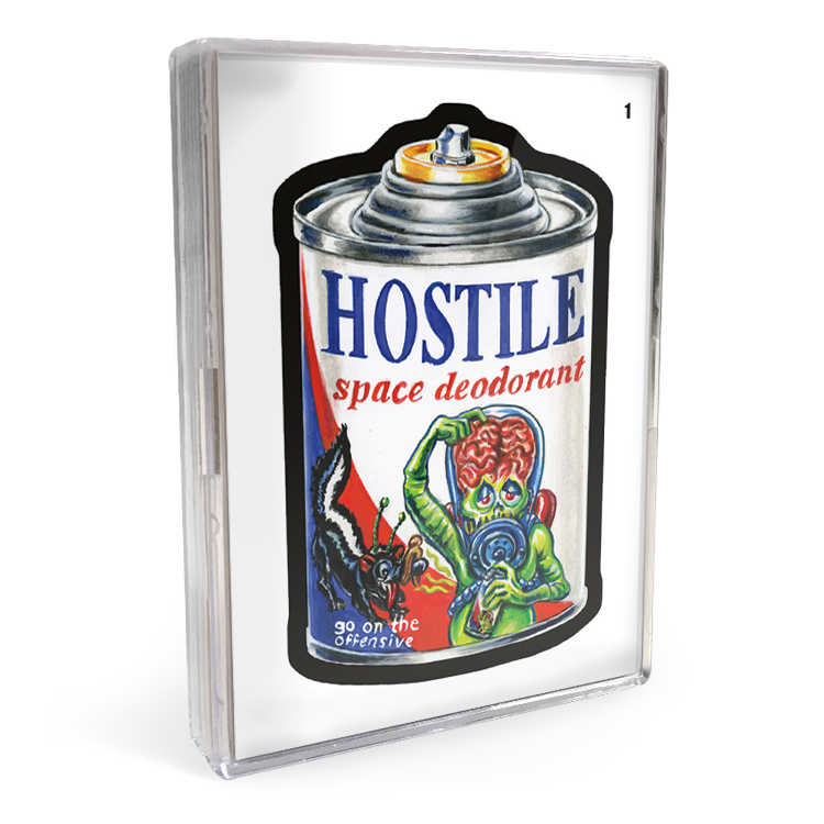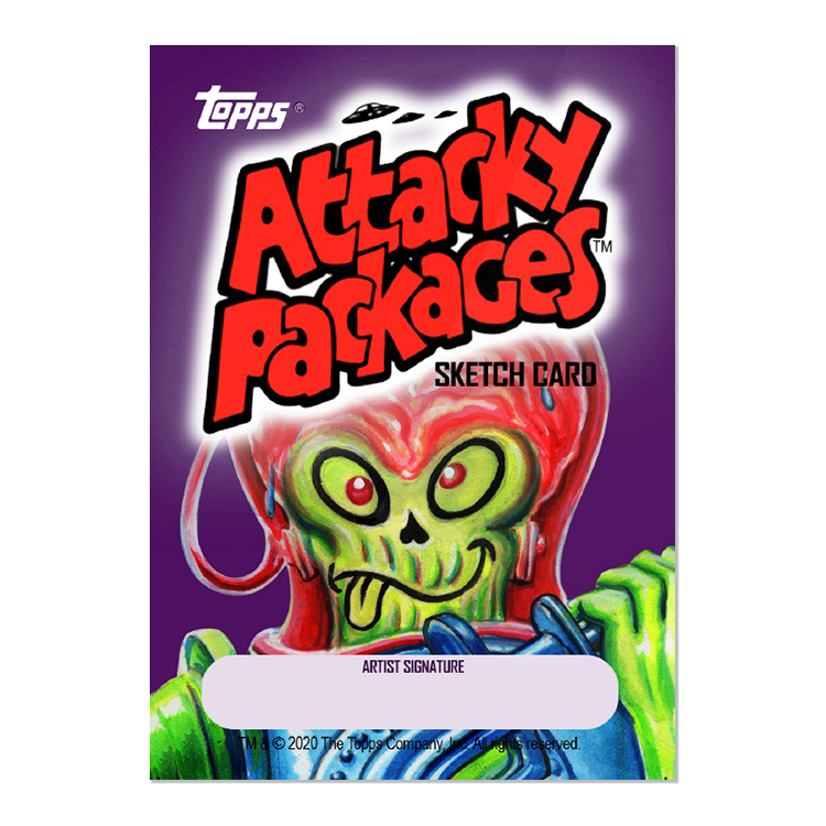 2020 Topps On Demand Mars Attacks Wacky Packages brings back another installment of your favorite aliens trying to sell us some of these out of this world products. All original art work and concepts were created by famed Wacky Packages and GPK artist Neil Camera. All sketch cards are done by Neil Camera.