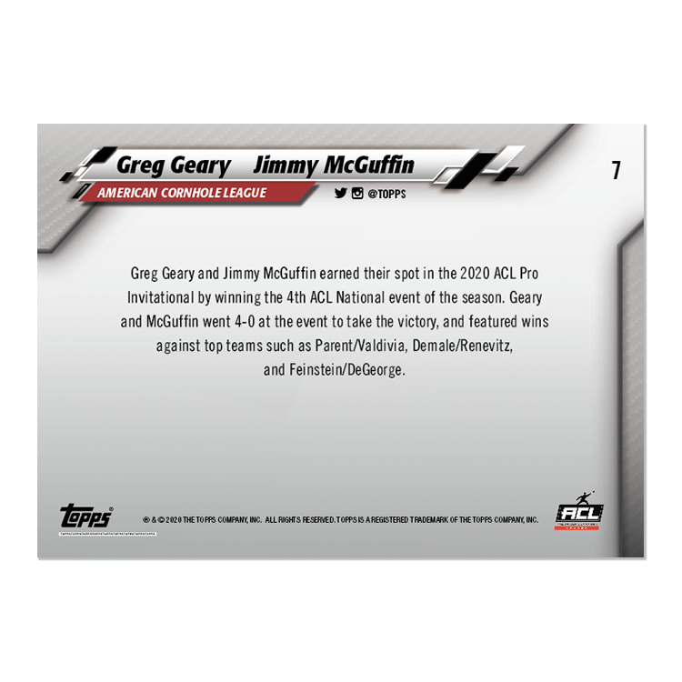 2020 Topps On-Demand Set #14 – American Cornhole League Pro Invitational Pack - Print Riun: 443