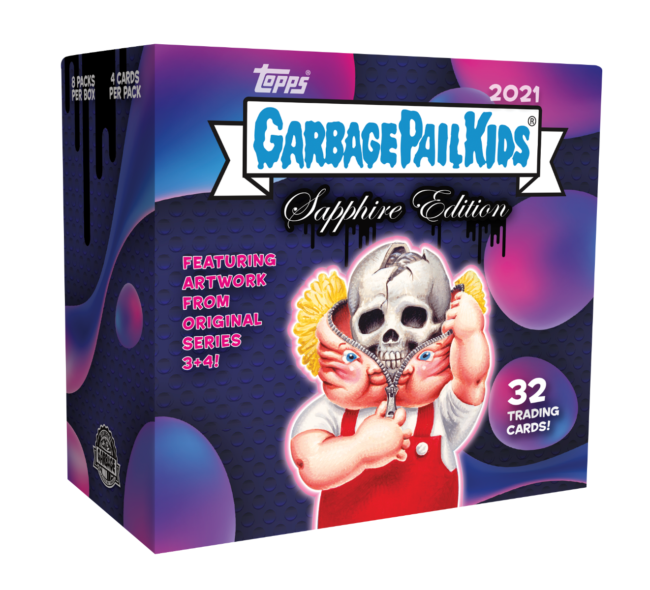 2021 Garbage Pail Kids Chrome Sapphire Edition brings the always beautiful Sapphire treatments to the always classic Original Series 3 & 4 GPK sets! Look out for a ton of exclusive Sapphire colored parallels bringing a level of glamor to some of the nastiest, stinkiest, and downright ugliest gags in GPK history!