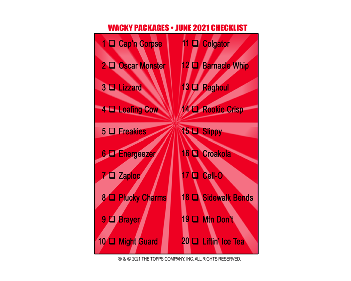 Stick ‘Em! Collect ‘Em! Trade Em! 2021 Wacky Packages is back for another year of Wacky Fun. Collect all the fun with the return of Wonky Packages and Coupons along with a new edition Wacky Playing cards. Build your own 52 card Wacky deck throughout the year. Visit Topps.com the 2nd Wednesday of each month for a brand new series of fun stickers.
