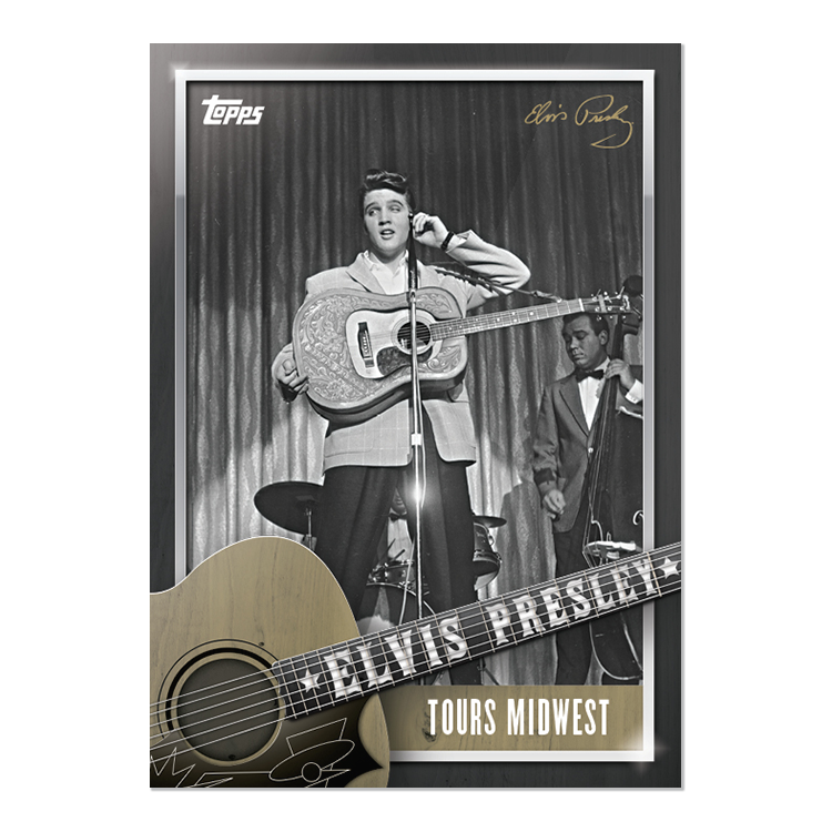 Topps commemorates the life and career of Elvis Presley with exclusive photography and new, unique card designs that tell the historic and captivating story of the King. Collect them all!