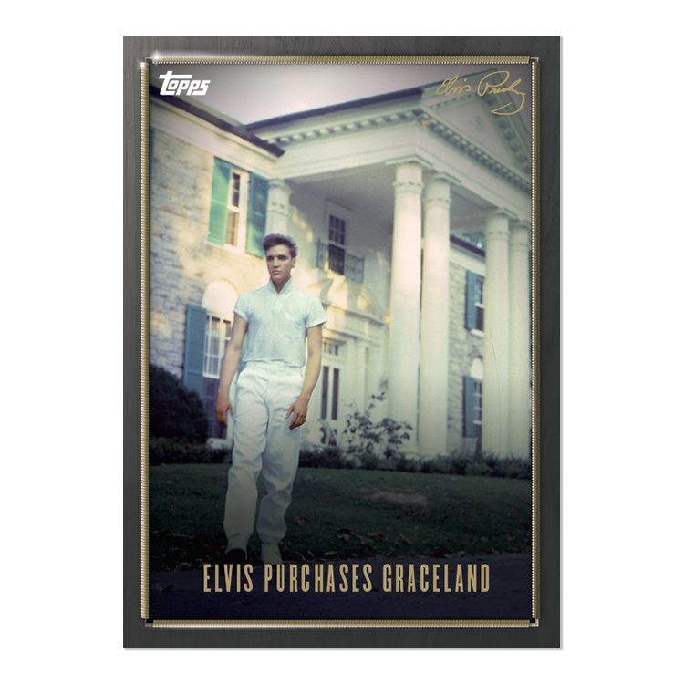 Topps commemorates the life and career of Elvis Presley with exclusive photography and new, unique card designs that tell the historic and captivating story of the King. Collect them all!