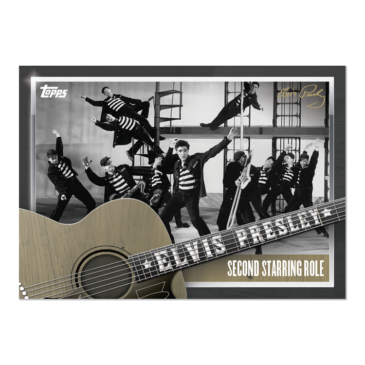 Topps commemorates the life and career of Elvis Presley with exclusive photography and new, unique card designs that tell the historic and captivating story of the King. Collect them all!
