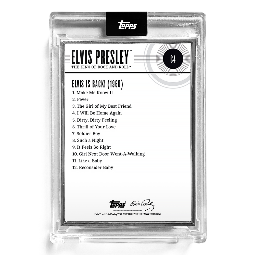 Topps commemorates the life and career of Elvis Presley with exclusive photography and new, unique card designs that tell the historic and captivating story of the King. Collect them all!