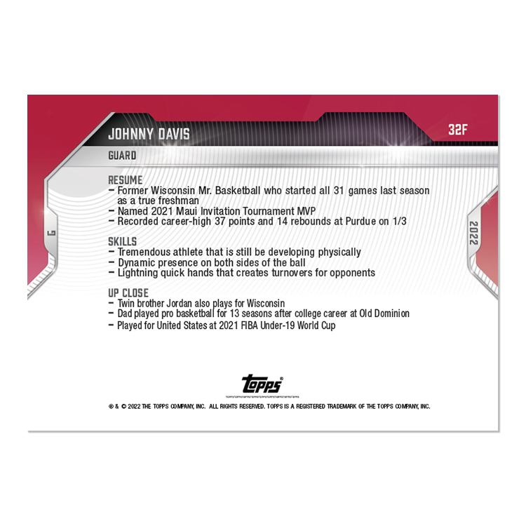 On-Card Auto # to 1 - Johnny Davis - 2022 Bowman NEXT TOPPS NOW® Basketball Card 32F