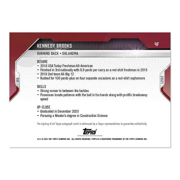 On-Card Auto # to 1 - Kennedy Brooks - 2021 Bowman NEXT TOPPS NOW® Football Card 4F