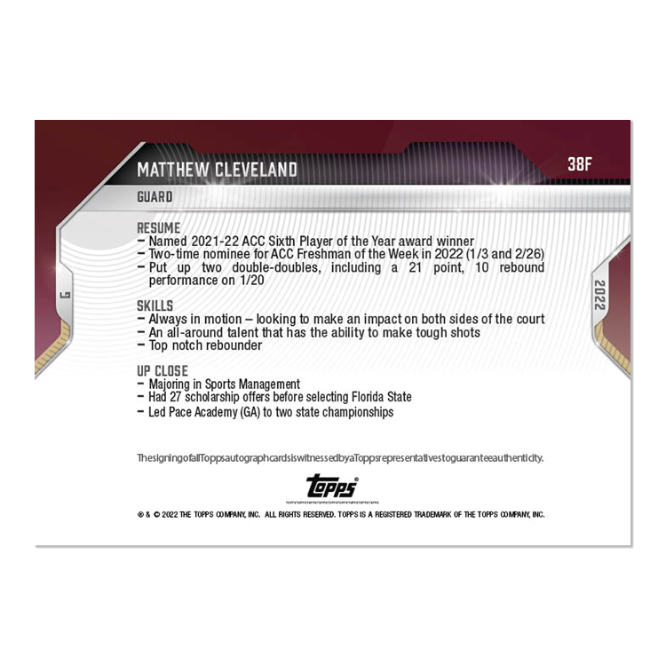 On-Card Auto # to 1 - Matthew Cleveland - 2022 Bowman NEXT TOPPS NOW® Basketball Card 38F