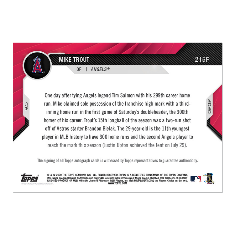 On-Card Auto # to 1 - Mike Trout - MLB TOPPS NOW® Card 215F