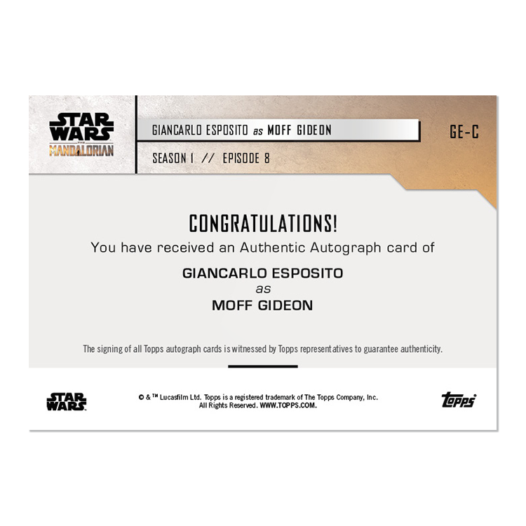 On-Card Auto # to 10 - Giancarlo Esposito as Moff Gideon - Star Wars: The Mandalorian TOPPS NOW® Card TWC