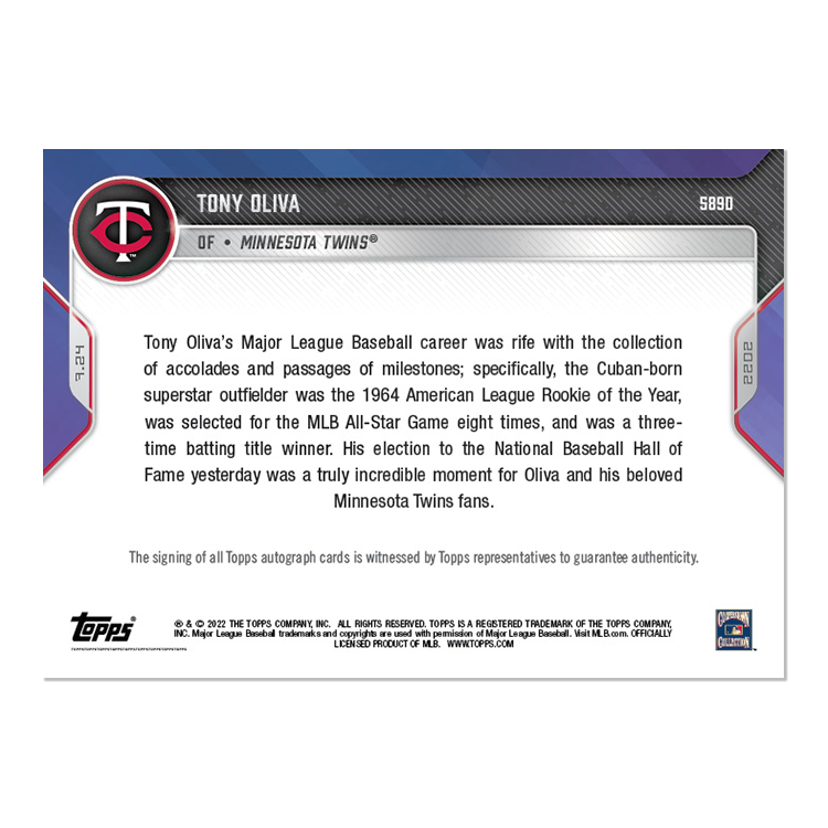 On-Card Auto # to 10 - Tony Oliva - 2022 MLB TOPPS NOW® Card 589D