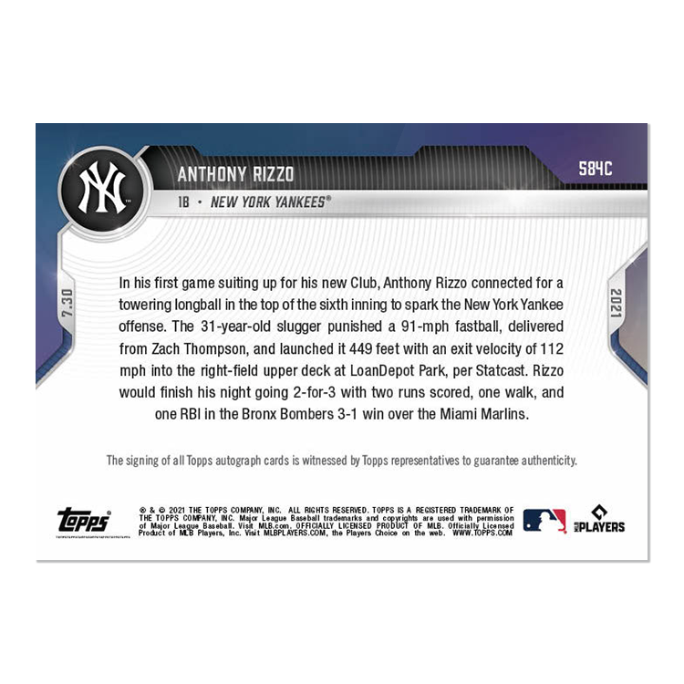 On-Card Auto # to 25 - Anthony Rizzo - 2021 MLB TOPPS NOW® Card 584C