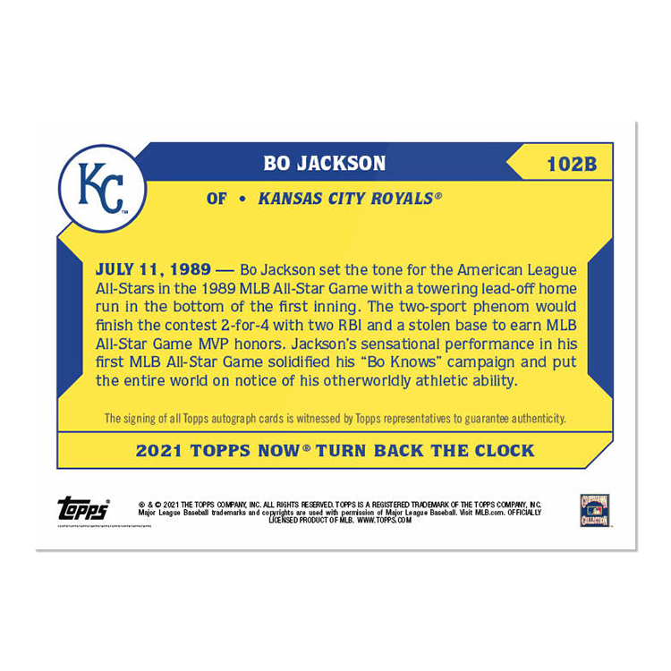 On-Card Auto # to 25 - Bo Jackson - 2021 MLB TOPPS NOW® Turn Back The Clock - Card 102B