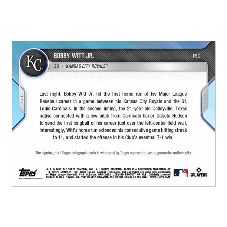On-Card Auto # to 25 - Bobby Witt Jr. - 2022 MLB TOPPS NOW® Card 119C