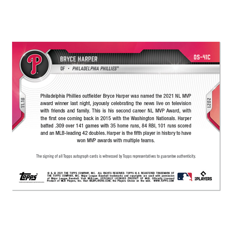 On-Card Auto # to 25 - Bryce Harper - 2021 MLB TOPPS NOW® Card OS-41C