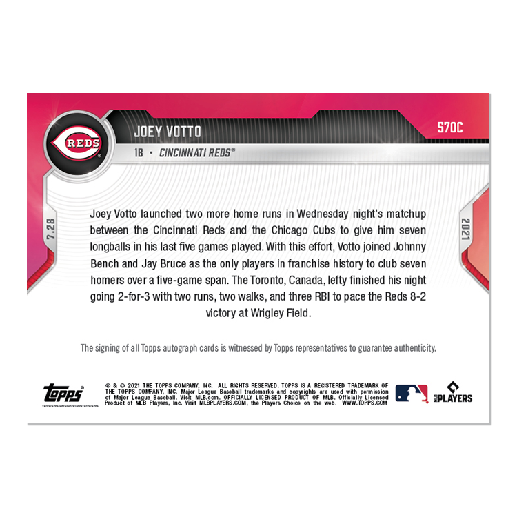 On-Card Auto # to 25 - Joey Votto - 2021 MLB TOPPS NOW® Card 570C