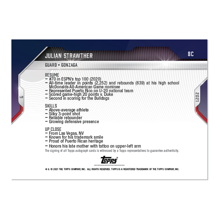 On-Card Auto # to 25 - Julian Strawther - 2021 Bowman NEXT TOPPS NOW® Basketball Card 8C