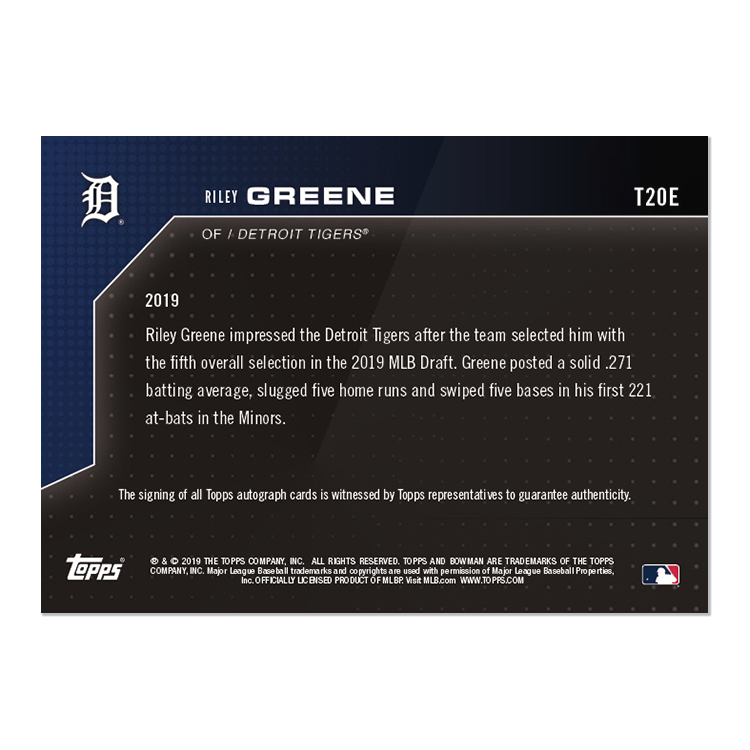 On-Card Auto # to 5 - Riley Greene - Bowman NEXT TOPPS NOW® Card T20E