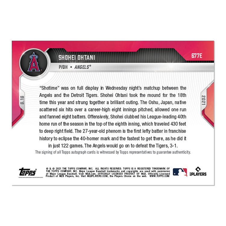 On-Card Auto # to 5 - Shohei Ohtani - 2021 MLB TOPPS NOW® Card 677E