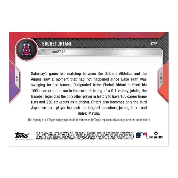 On-Card Auto # to 5 - Shohei Ohtani - 2022 MLB TOPPS NOW® Card 176E