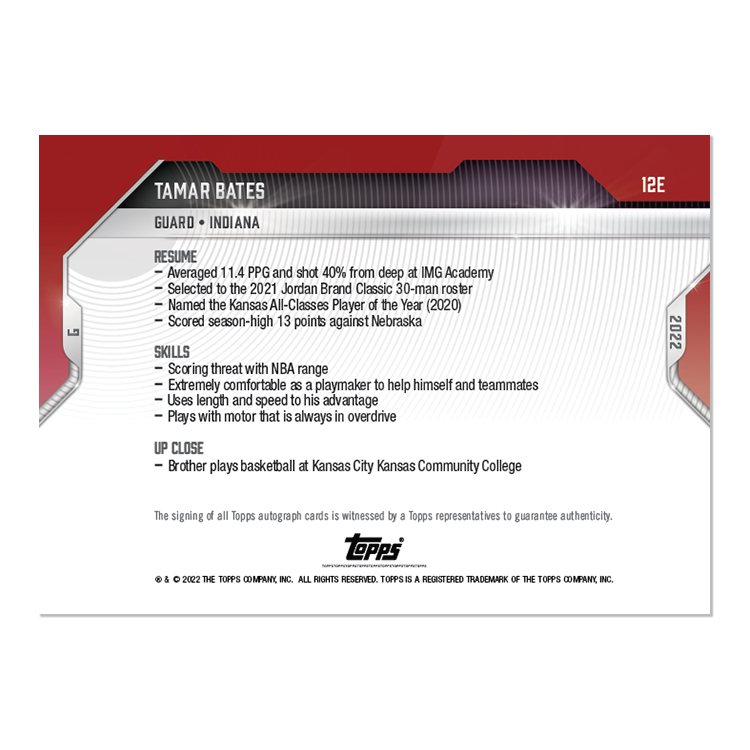 On-Card Auto # to 5 - Tamar Bates - 2022 Bowman NEXT TOPPS NOW® Basketball Card 12E