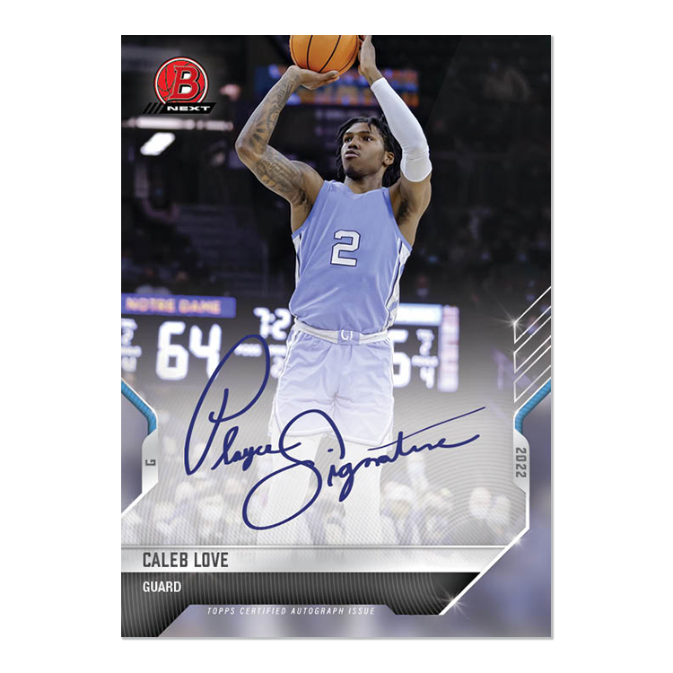 On-Card Auto # to 99 - Caleb Love - 2022 Bowman NEXT TOPPS NOW® Basketball Card 36A