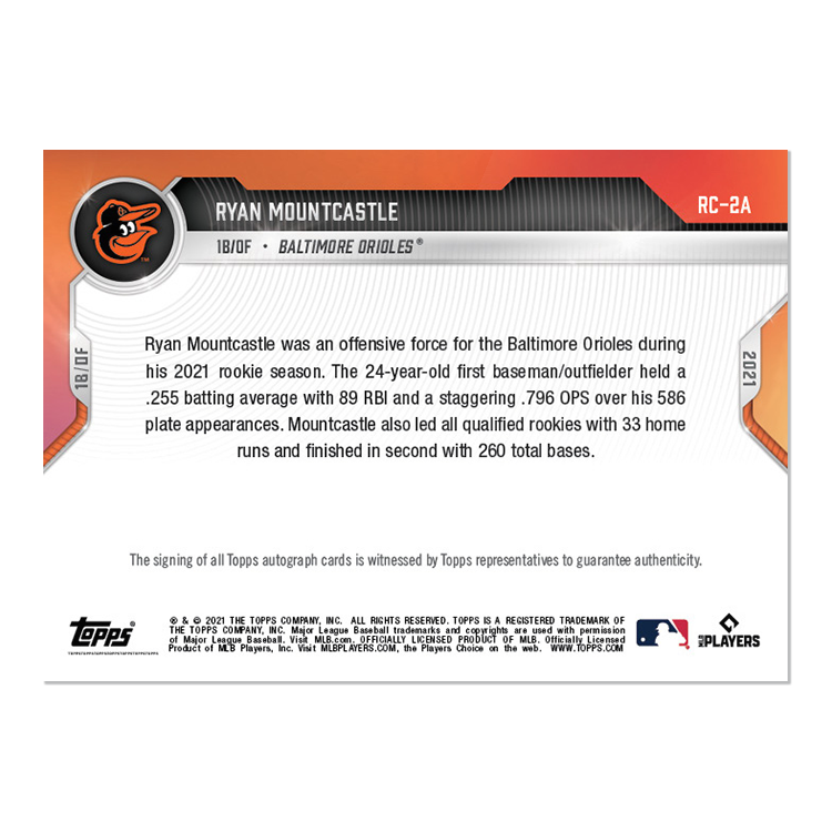 On-Card Auto # to 99 - Ryan Mountcastle - 2021 MLB TOPPS NOW® Card RC-02A