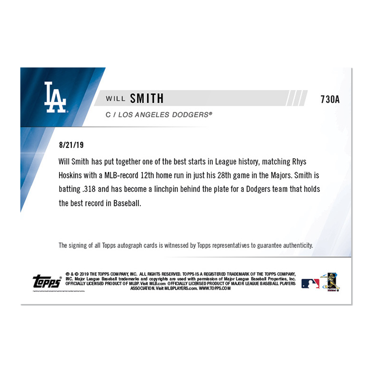 On-Card Auto # to 99 - Will Smith - MLB TOPPS NOW® Card 730A