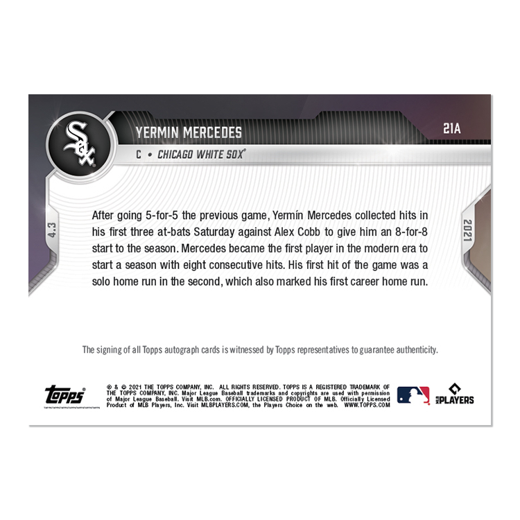 On-Card Auto # to 99 - Yermin Mercedes - 2021 MLB TOPPS NOW® Card 21A