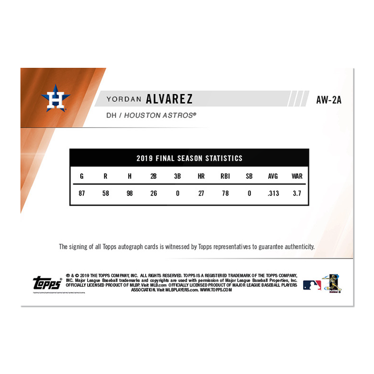 On-Card Auto # to 99 - Yordan Alvarez - MLB TOPPS NOW® Card AW02A